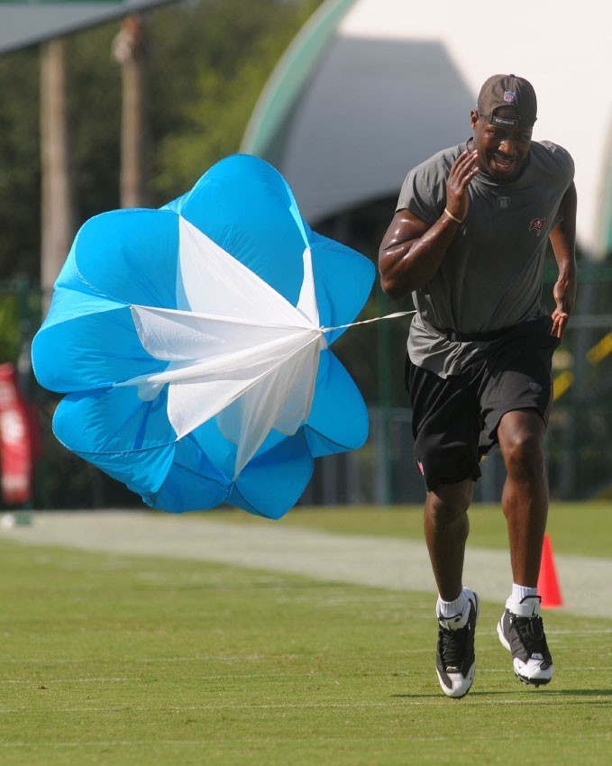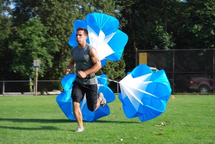 De parachute opent tijdens het lopen zodat de weerstand toeneemt.